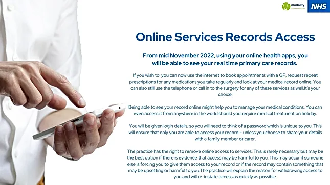 If you are someone who needs a carer to help you, we are able to grant your carer access to limited aspects of your records too.
